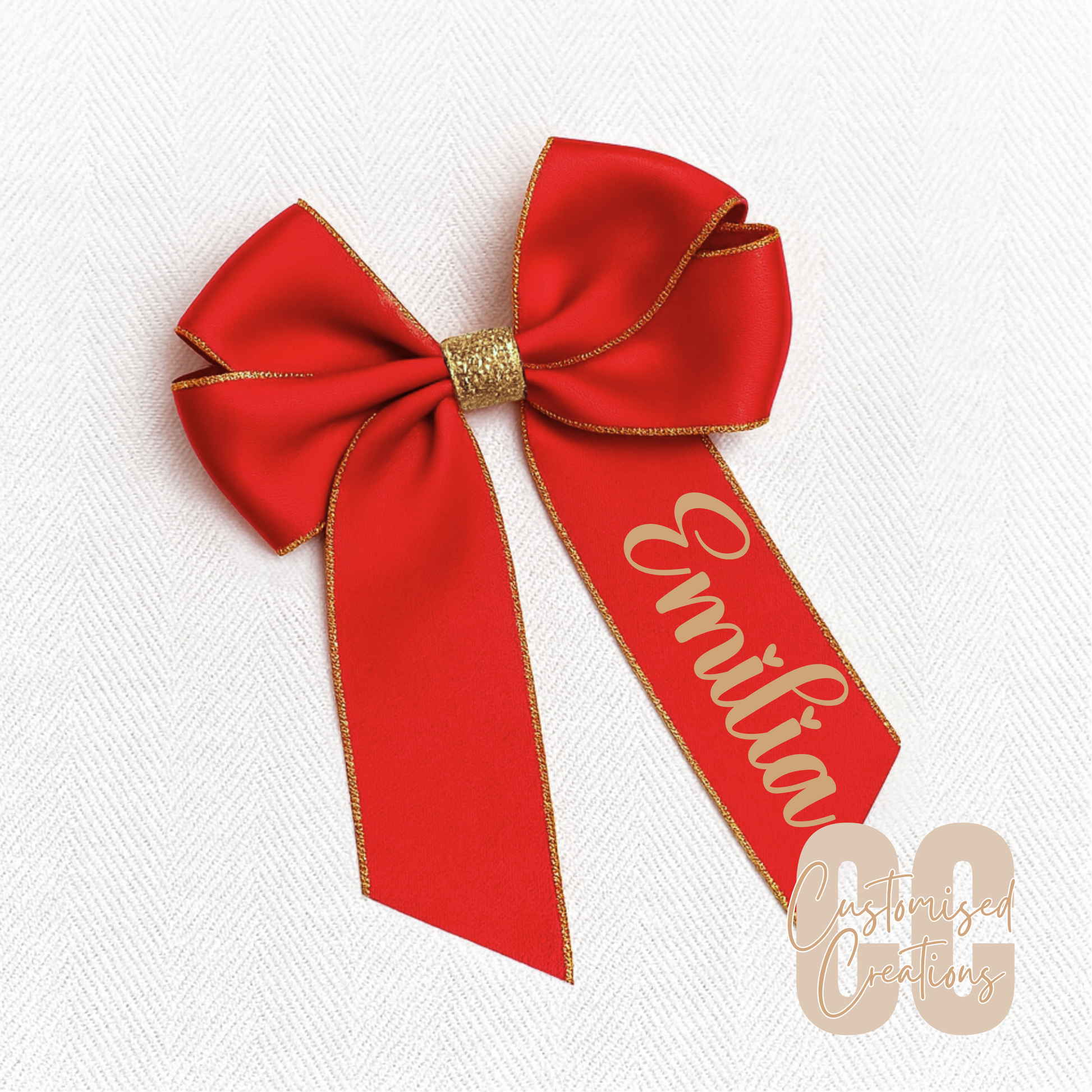 6inch hair bow - red/gold glitter