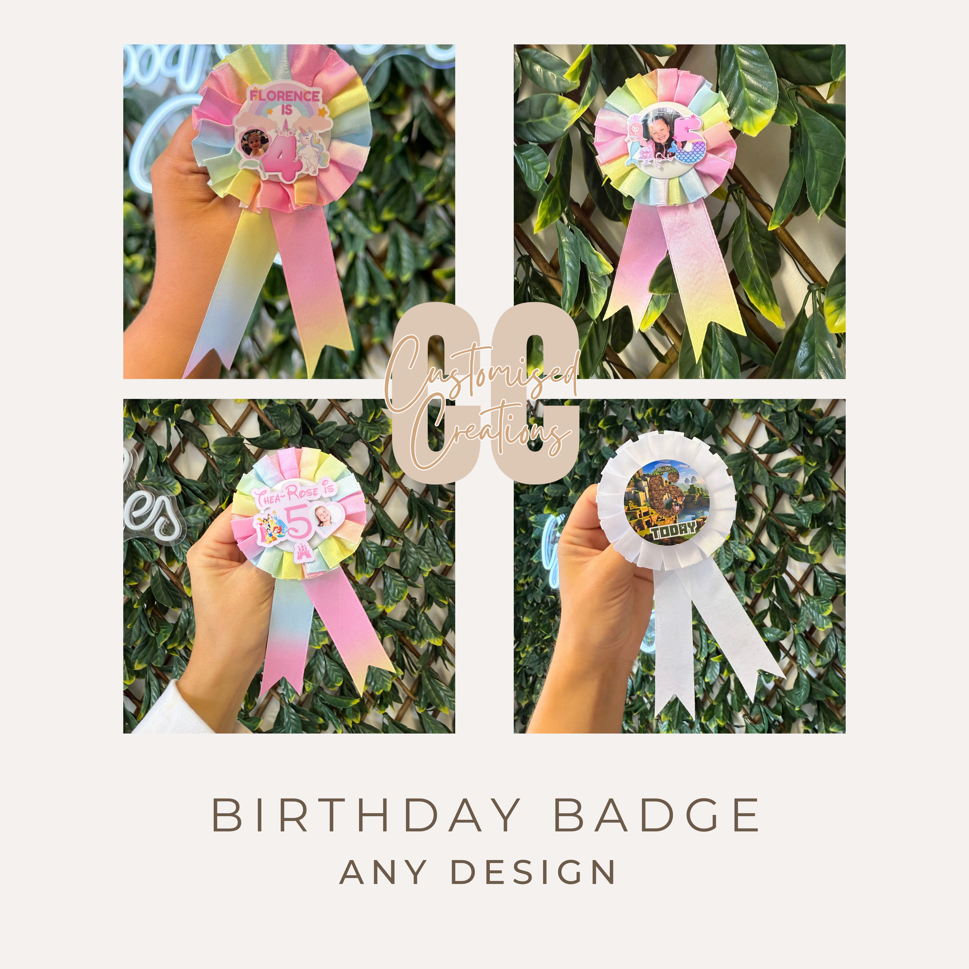 Personalised with a name, age and chosen wording, each badge is ideal for birthday parties, school celebrations, photos and keepsakes. From cute and colourful to themed and stylish, your rosette will be designed to suit any age – from first birthdays to big milestones.