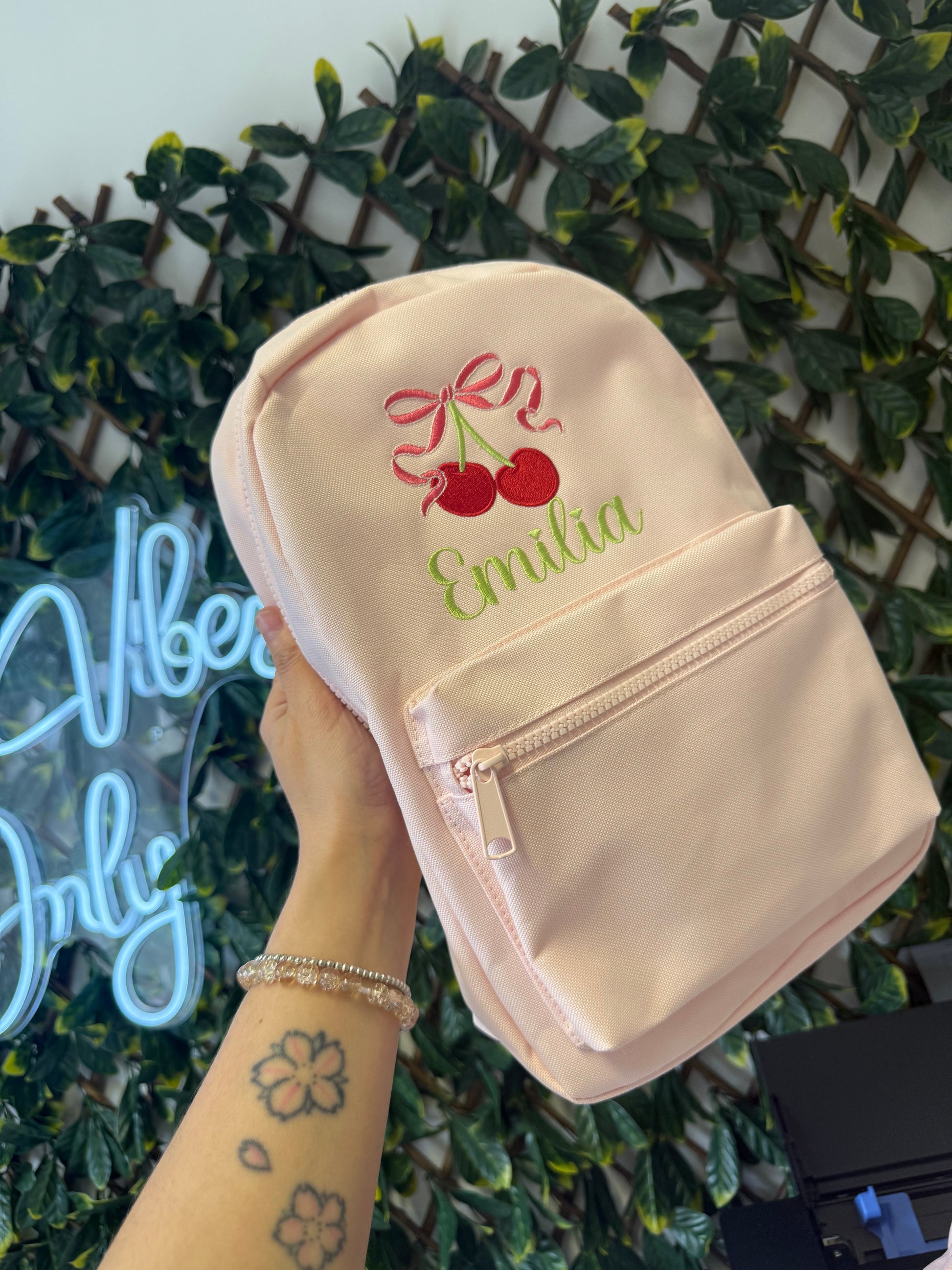 Embroidered cherries backpack 7L
