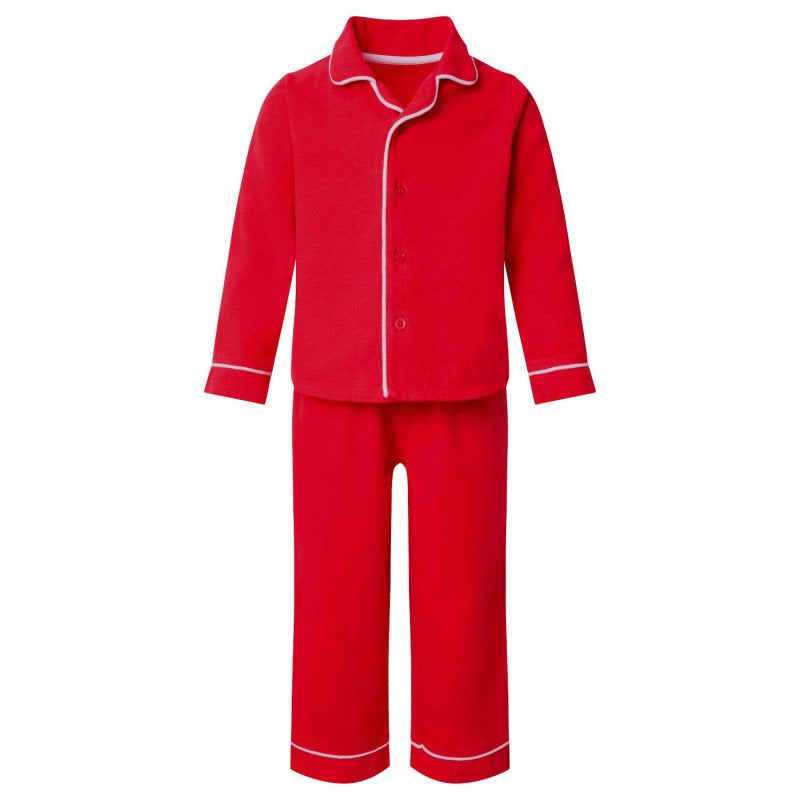Embroidered Kids Classic Long Sleeve Pyjama Set in Red