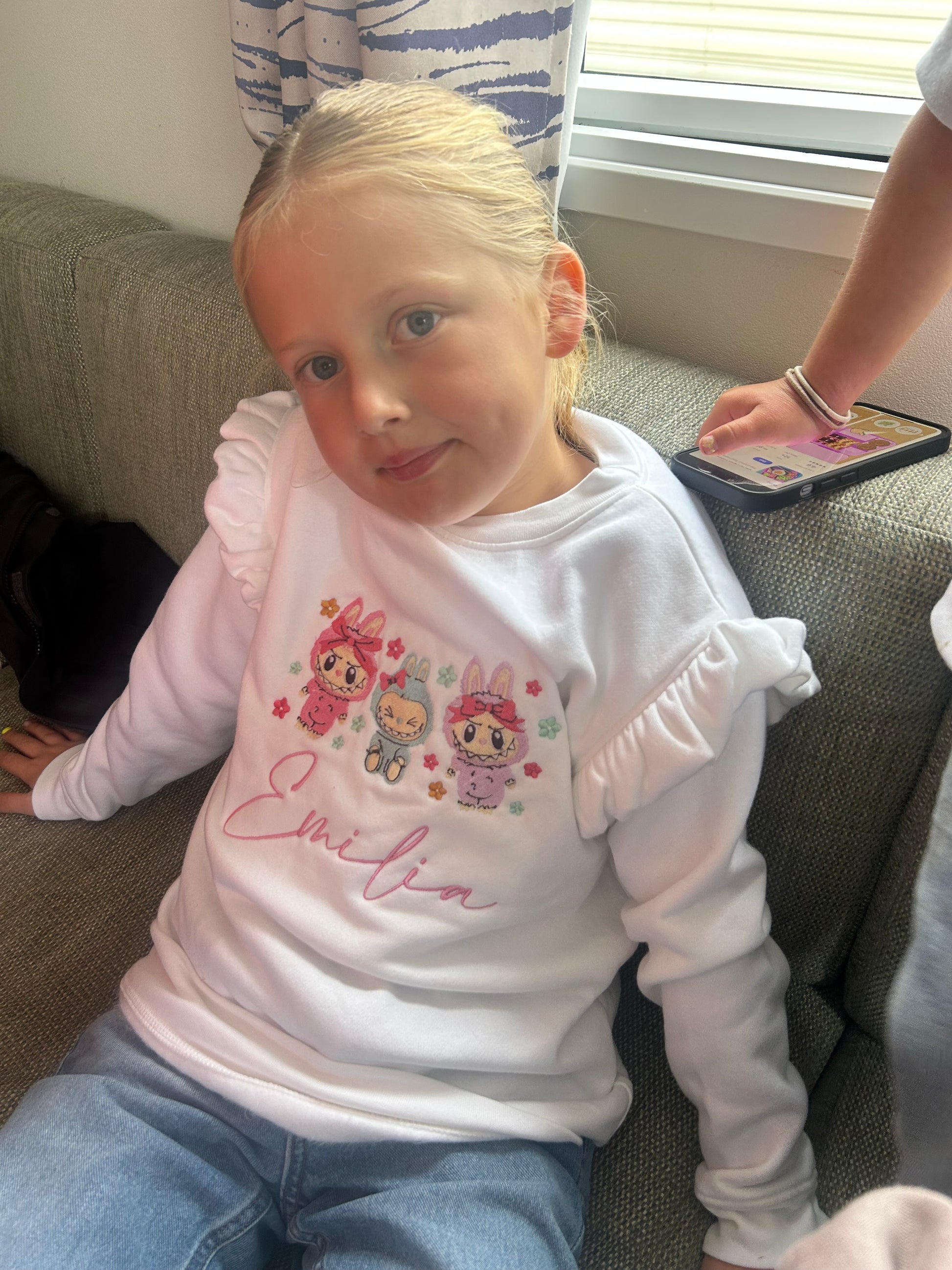 Embroidered Labubu White frilled sweatshirt