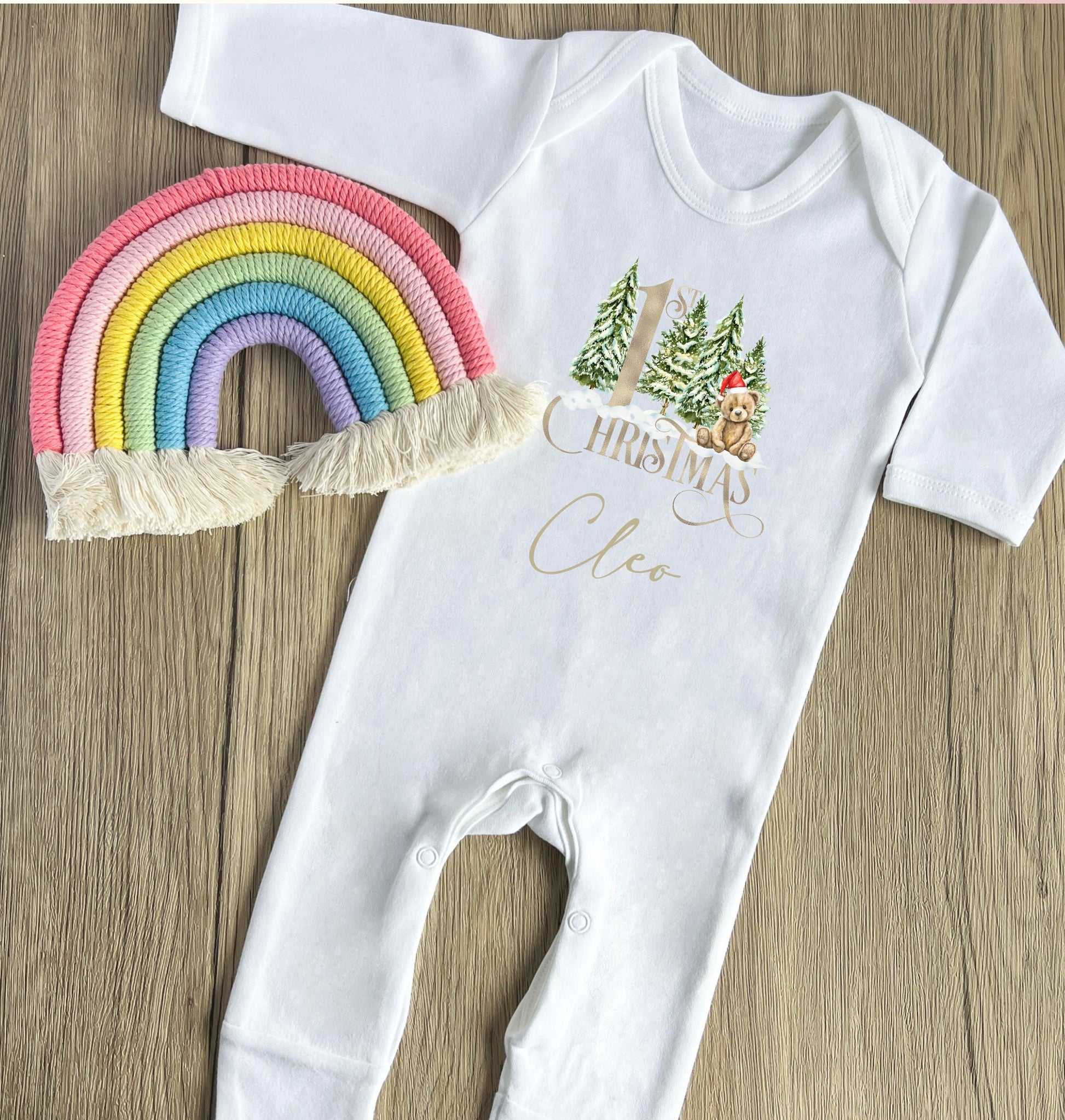 Gold bear 1st Christmas babygrow