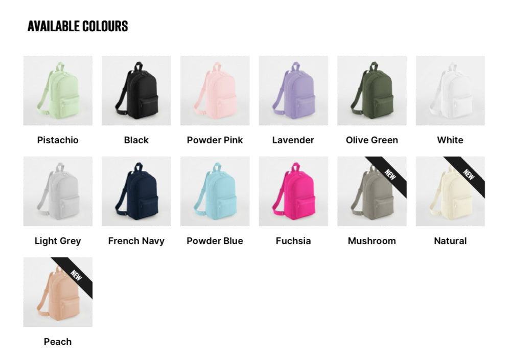 • 13 backpack colors available
