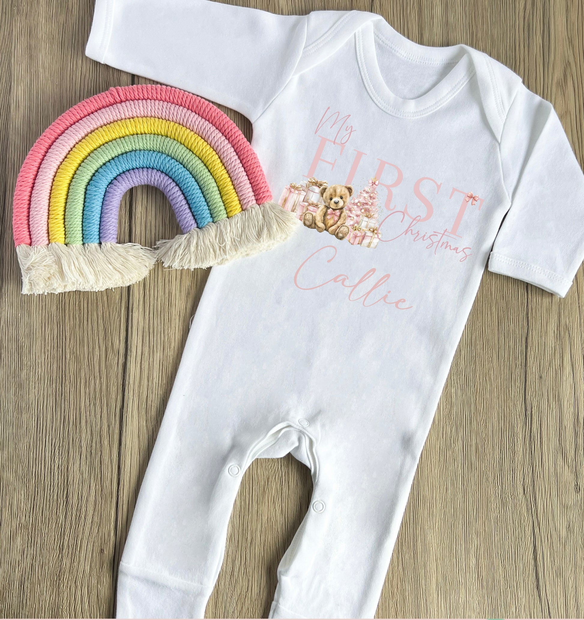 Pink bear my 1st Christmas babygrow