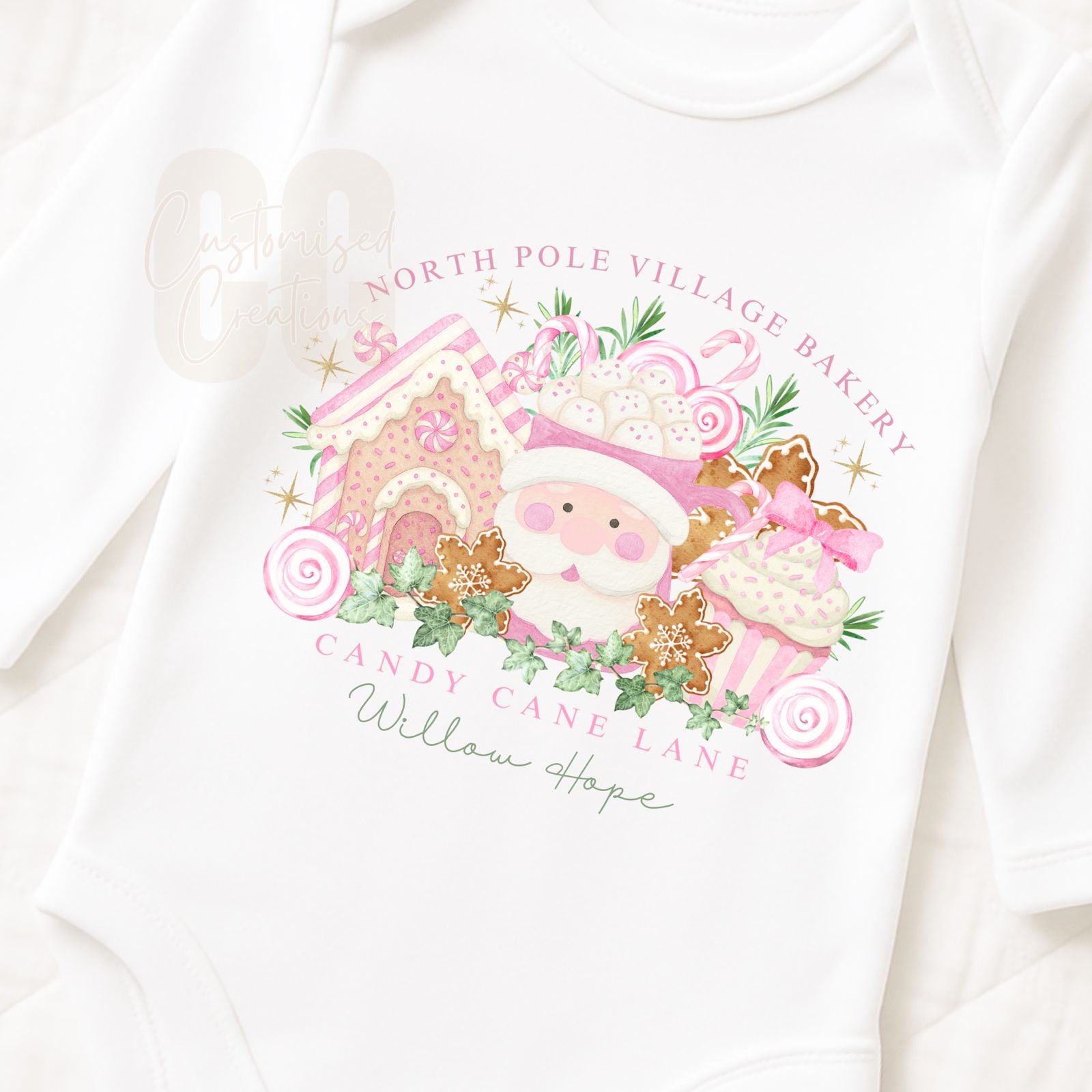 Pink christmas village bib/vest/babygrow