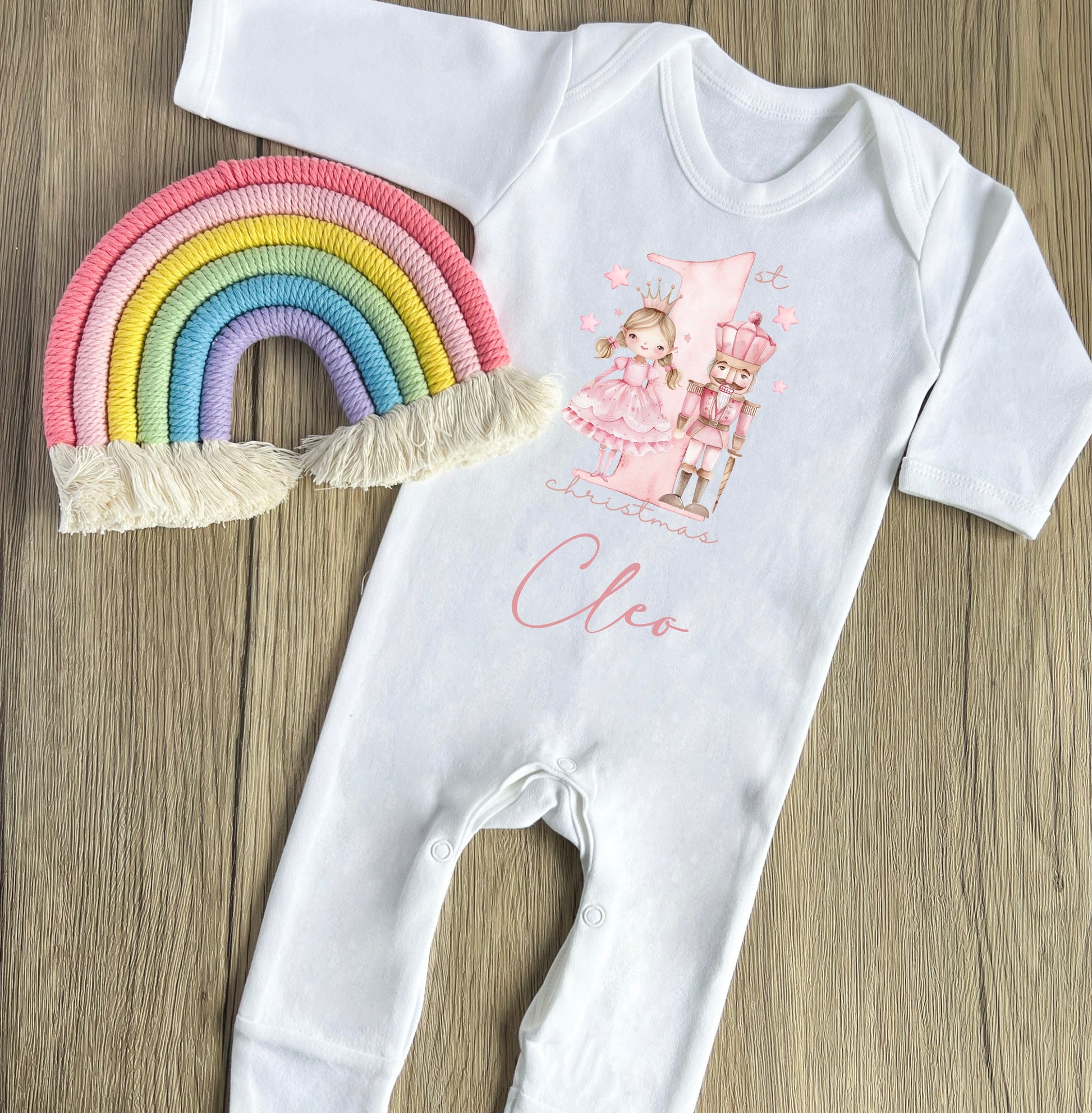 Pink nutcracker 1st Christmas babygrow