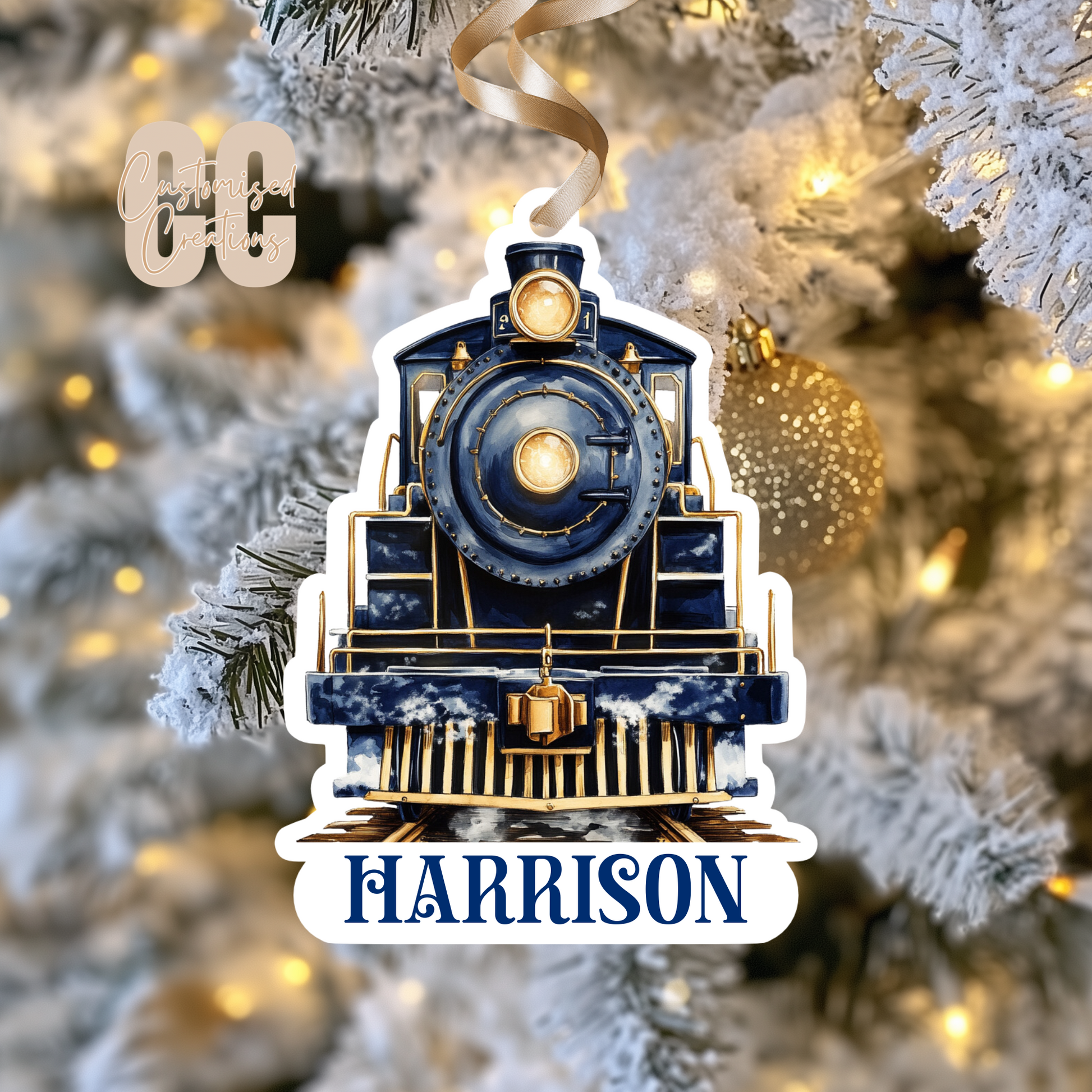 Train acrylic bauble - navy or pink